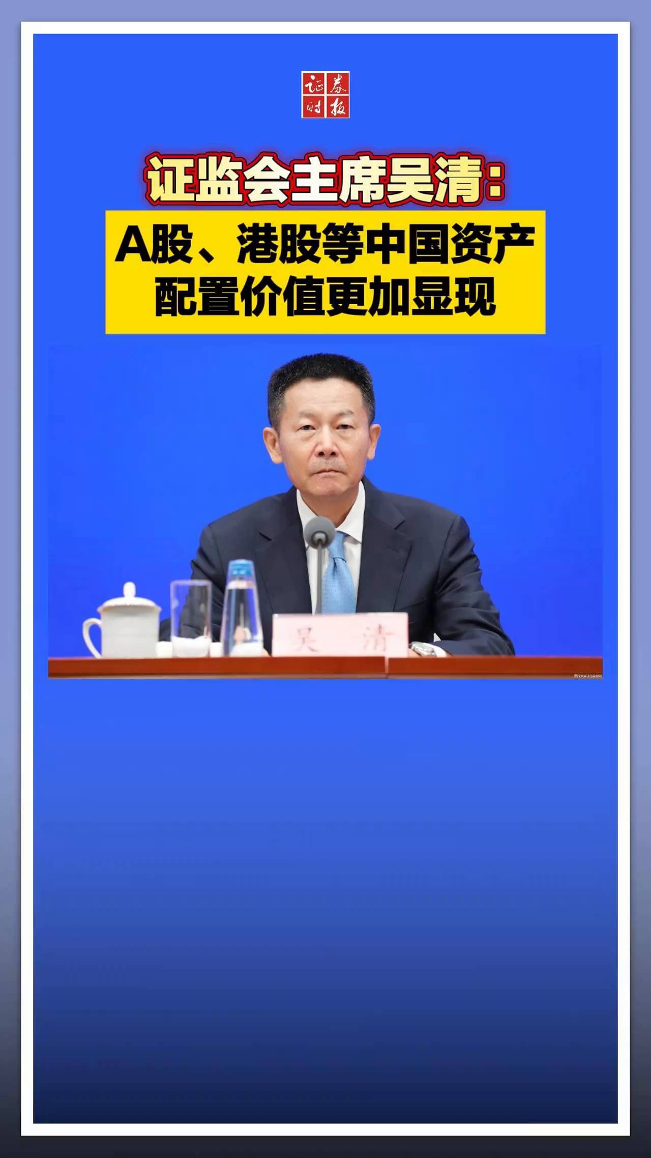 证监会主席吴清:A股、港股等中国资产配置价值更加显现