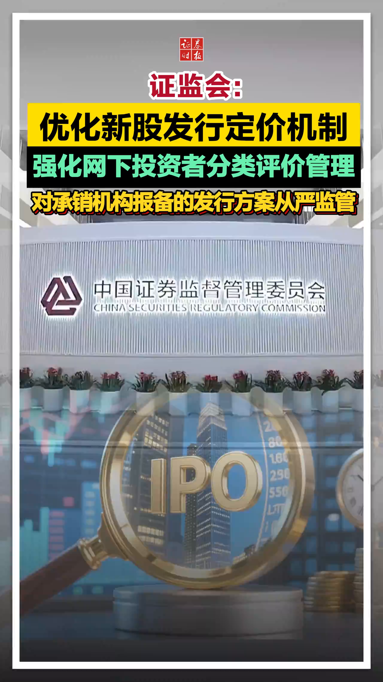 证监会:优化新股发行定价机制,强化网下投资者分类评价管理,对承销机构报备的发行方案从严监管。