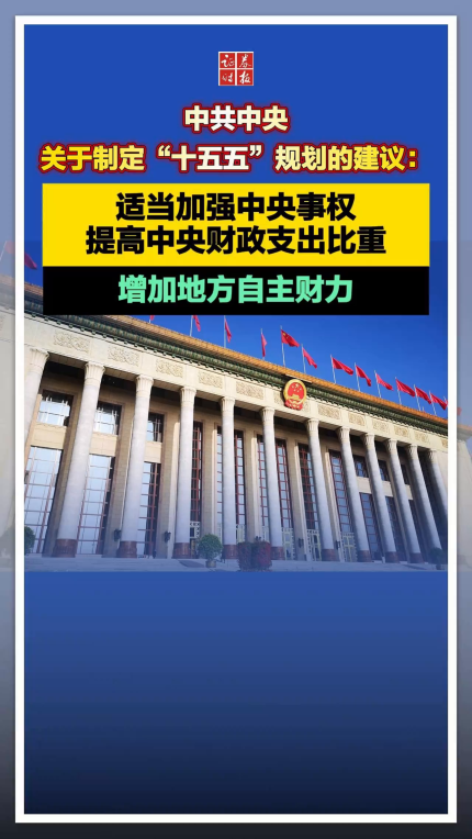 中共中央关于制定“十五五”规划的建议:适当加强中央事权,提高中央财政支出比重,增加地方自主财力。