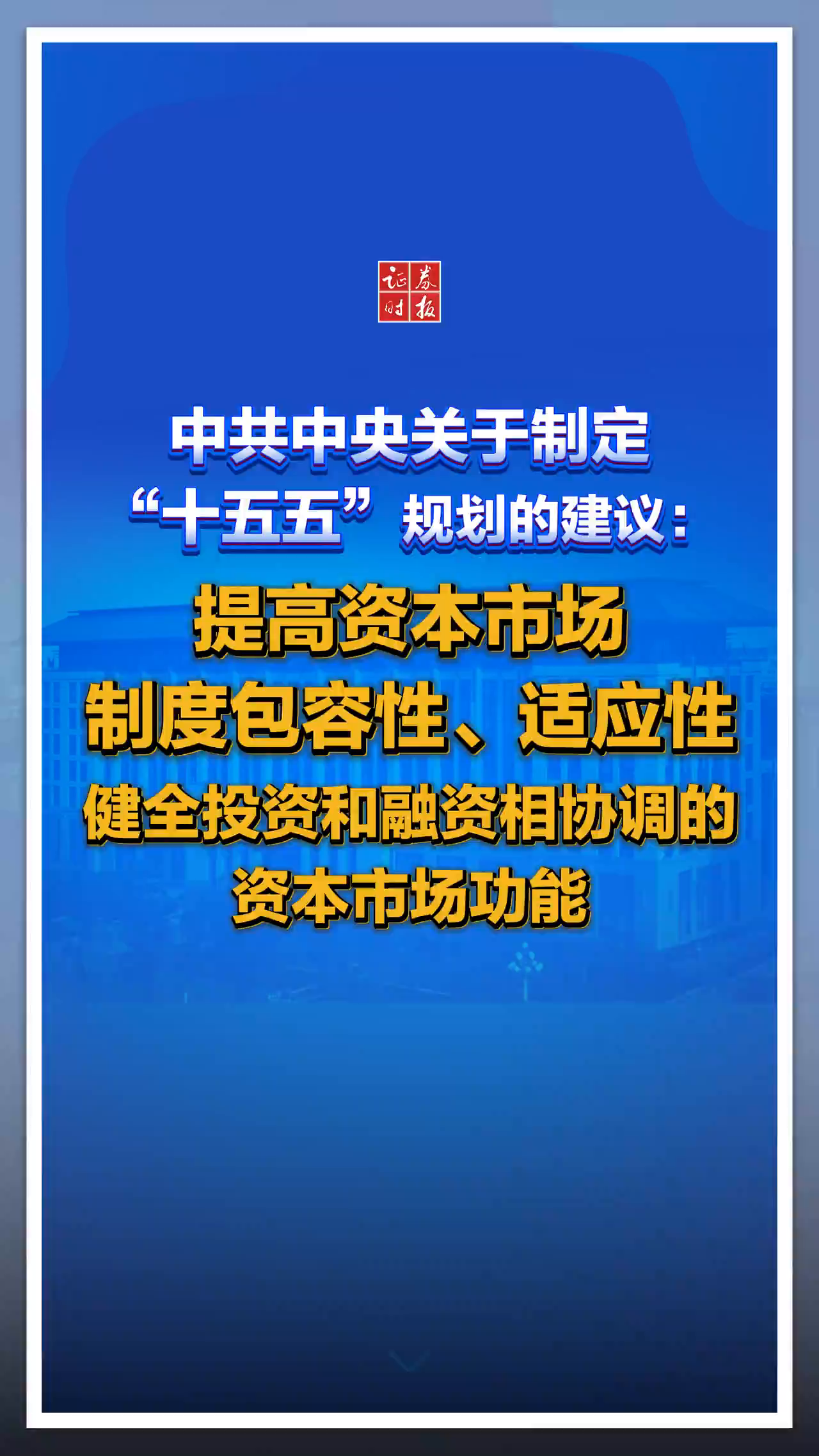 中共中央关于制定“十五五”规划的建议:提高资本市场制度包容性、适应性,健全投资和融资相协调的资本市场功