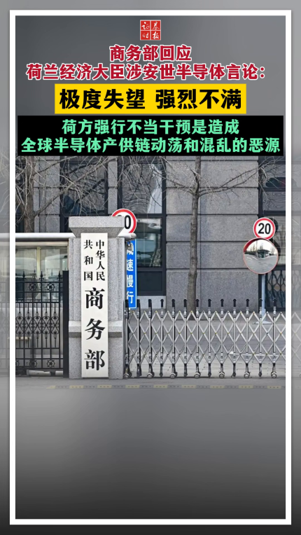 商务部回应荷兰经济大臣涉安世半导体言论:极度失望 强烈不满 荷方强行不当干预是造成全球半导体产供链动荡和混乱的恶源