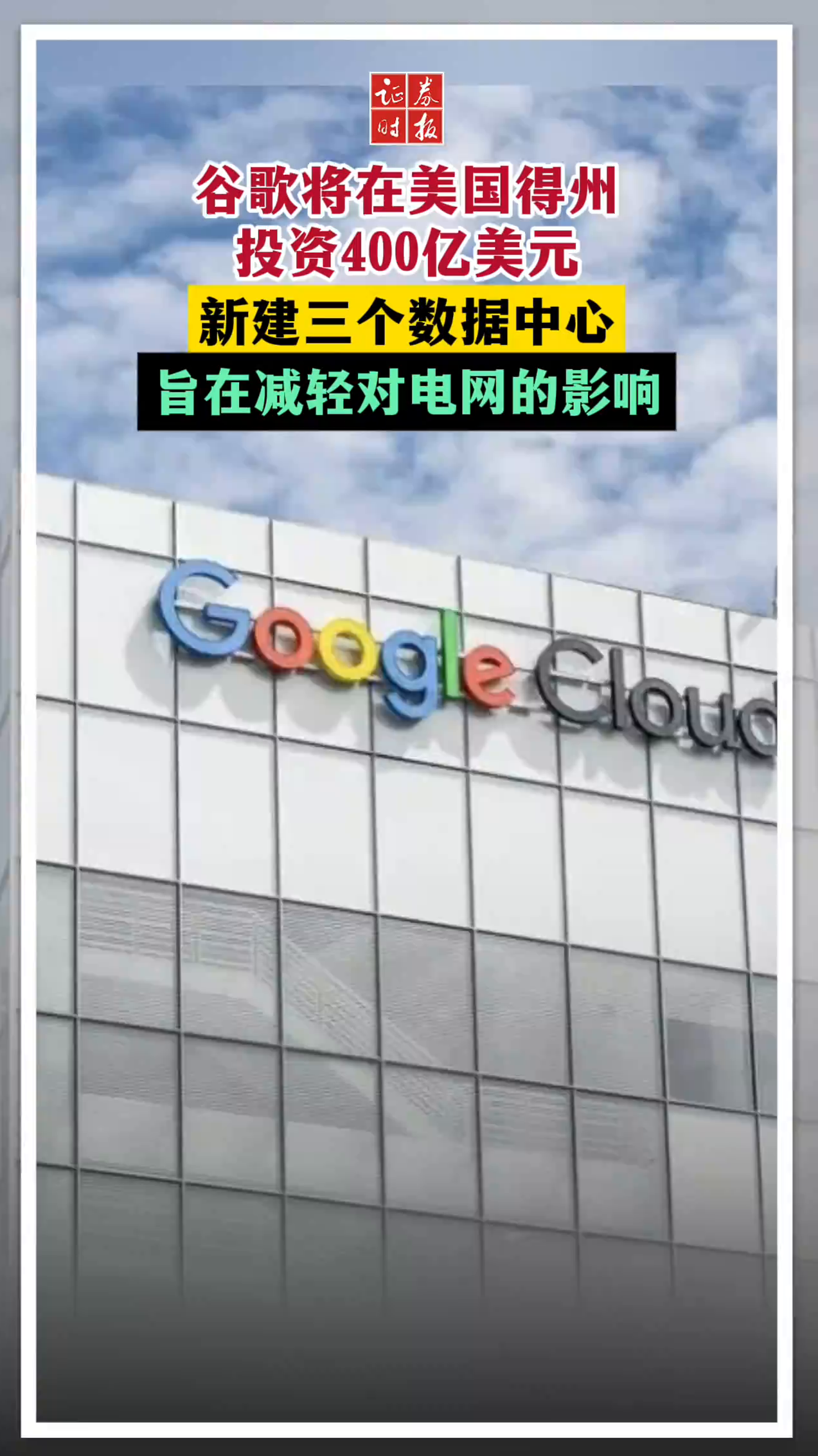 谷歌将在美国得州投资400亿美元 新建三个数据中心 旨在减轻对电网的影响