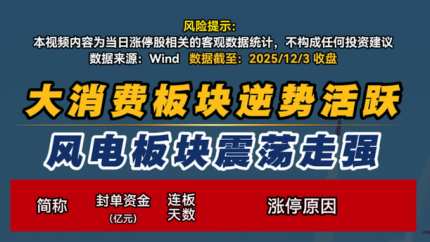 大消费板块逆势活跃 风电板块震荡走强