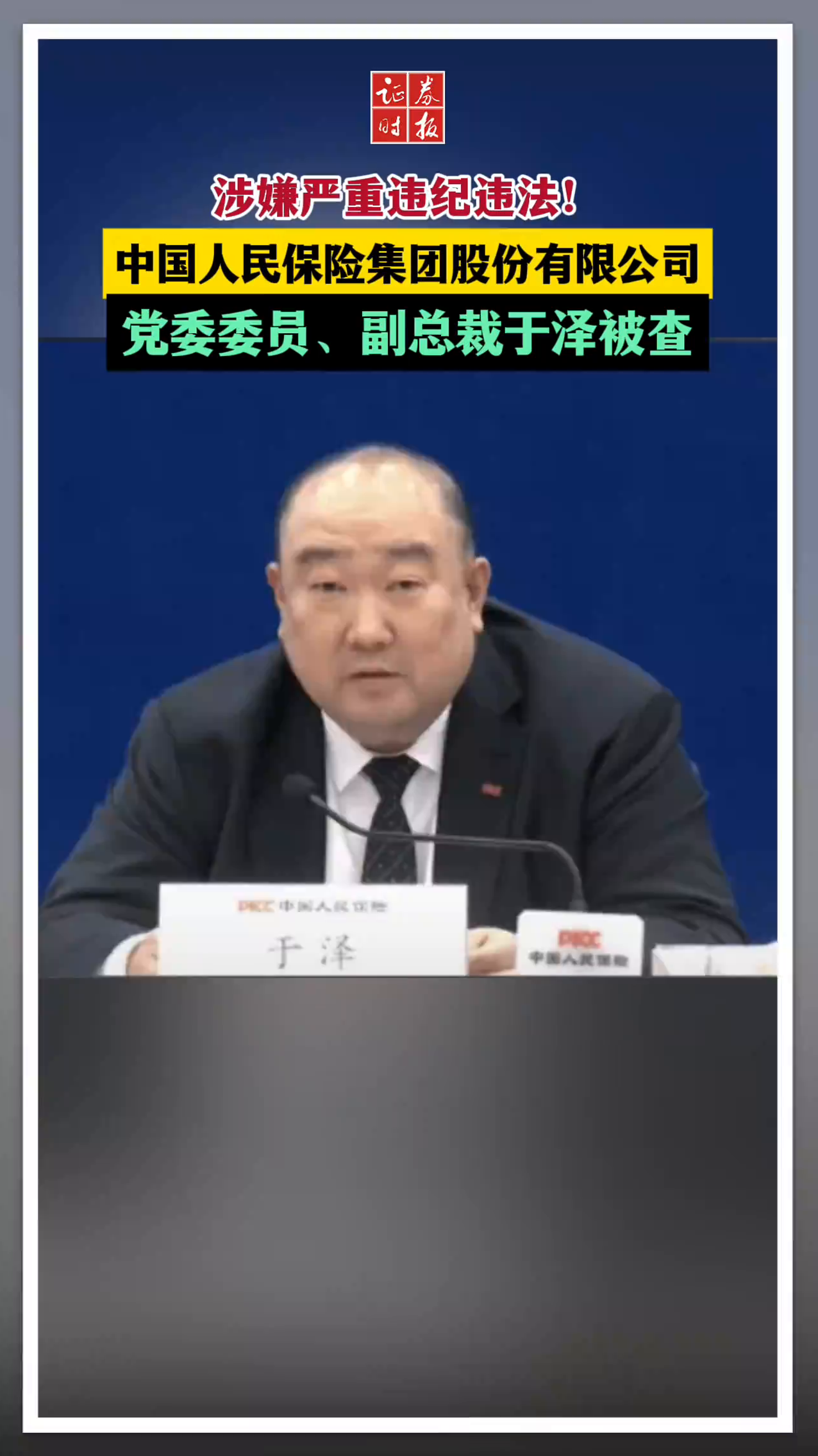 涉嫌严重违纪违法!中国人民保险集团股份有限公司 党委委员、副总裁于泽被查