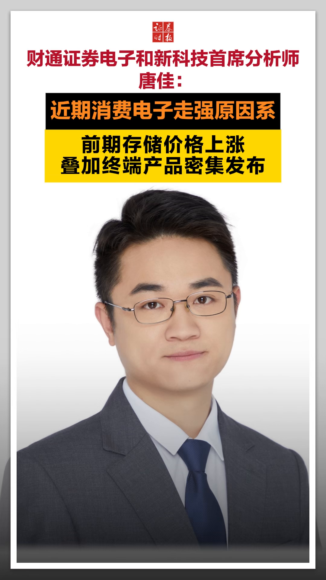 财通证券电子和新科技首席分析师唐佳: 近期消费电子走强原因系前期存储价格上涨叠加终端产品密集发布