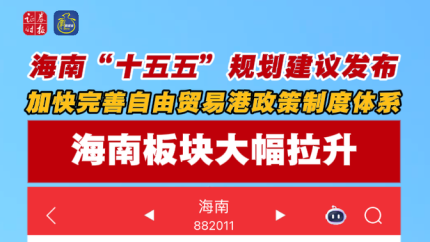 海南“十五五”规划建议发布 海南板块大幅拉升