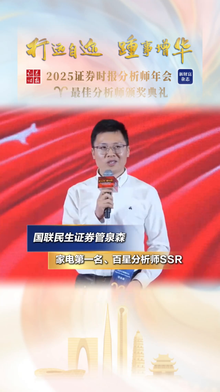 【2025证券时报分析师年会】家电第一名、百星分析师SSR,国联民生证券管泉森发表获奖感言:不管是兴趣爱好还是工作职业,发展上限会比想象的高得多