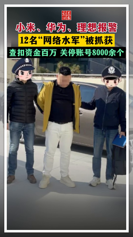 小米、华为、理想报警 12名“网络水军”被抓获 查扣资金百万 关停账号8000余个
