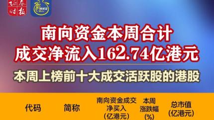 南向资金本周成交净流入162.74亿港元,明显加仓大型科技股!#港股 #南向资金 #南向资金净流入 #科技股 #港股十大成交活跃股