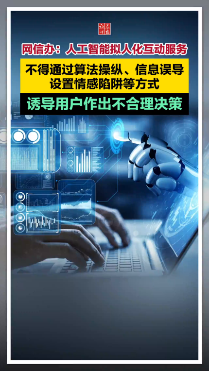 网信办:人工智能拟人化互动服务不得通过算法操纵、信息误导、设置情感陷阱等方式诱导用户作出不合理决策