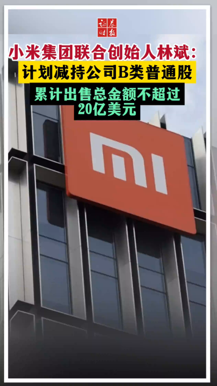 小米集团联合创始人林斌:计划减持公司B类普通股 累计出售总金额不超过20亿美元