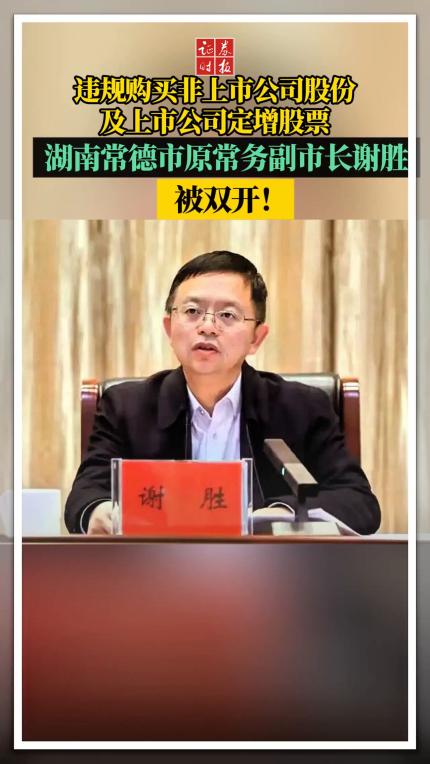 违规购买非上市公司股份及上市公司定增股票,湖南省常德市原常务副市长谢胜被开除党籍和公职