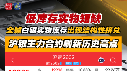 全球白银实物库存出现结构性挤兑 沪银主力合约刷新历史高点