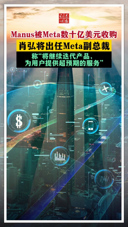 Manus被Meta数十亿美元收购 肖弘将出任Meta副总裁 称“将继续迭代产品,为用户提供超预期的服务”