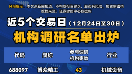 近5个交易日机构调研名单出炉(12月24日至30日)
