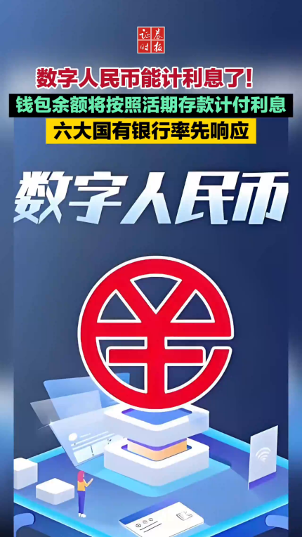 数字人民币能计利息了!钱包余额将按照活期存款计付利息 六大国有银行率先响应