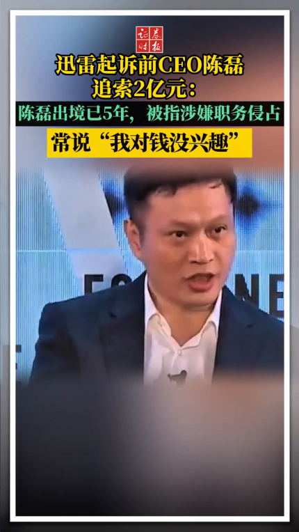 迅雷起诉前CEO陈磊,追索2亿元!陈磊出境已5年,被指涉嫌职务侵占,常说“我对钱没兴趣”