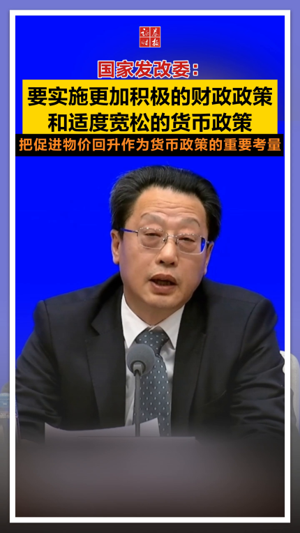 国家发改委:要实施更加积极的财政政策和适度宽松的货币政策,把促进物价回升作为货币政策的重要考量