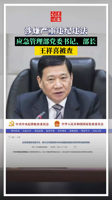 涉嫌严重违纪违法,应急管理部党委书记、部长王祥喜被查