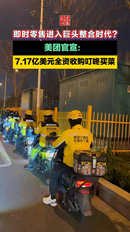 美团官宣:拟以7.17亿美元全资收购叮咚买菜