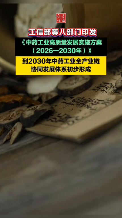八部门:到2030年中药工业全产业链协同发展体系初步形成