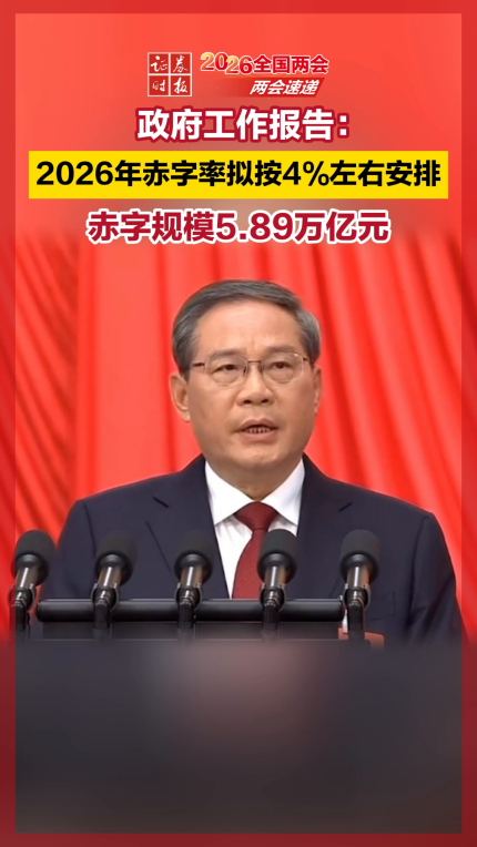 政府工作报告:2026年赤字率拟按4%左右安排 赤字规模5.89万亿元
