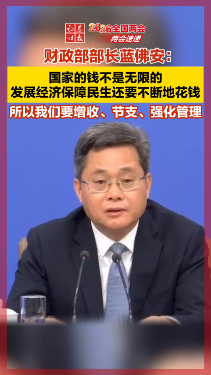 财政部部长蓝佛安:国家的钱不是无限的,发展经济保障民生还要不断地花钱,所以我们要增收、节支、强化管理