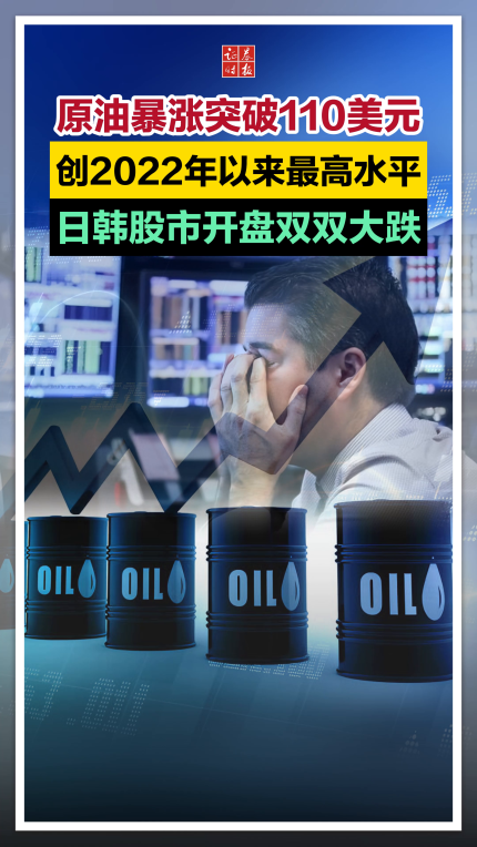 原油暴涨突破110美元,创2022年以来最高水平,日韩股市开盘双双大跌