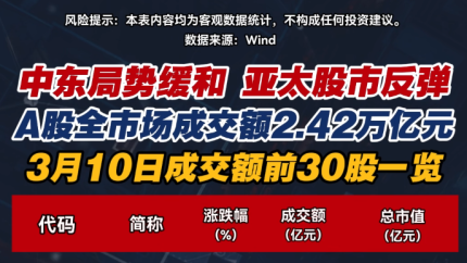 中东局势缓和 亚太股市反弹 A股全市场成交额2.42万亿元