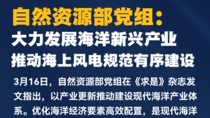 自然资源部党组:大力发展海洋新兴产业 推动海上风电规范有序建设