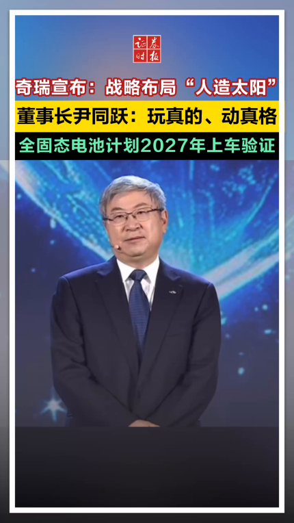 奇瑞宣布:战略布局“人造太阳”,董事长尹同跃:玩真的、动真格,全固态电池计划2027年上车验证