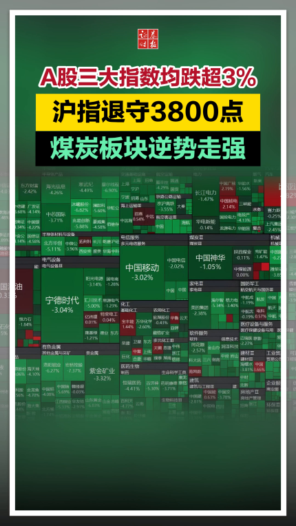A股三大指数集体收跌,沪指退守3800点,煤炭板块逆势走强
