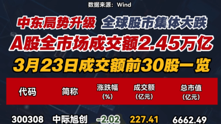 中东局势升级全球股市集体大跌 A股全市场成交额2.45万亿