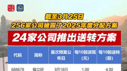 截至3月25日,24家公司推出送转方案