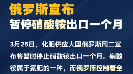 俄罗斯宣布暂停硝酸铵出口一个月