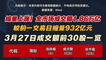 缩量上涨!全市场成交额1.86万亿 较前一交易日缩量932亿元