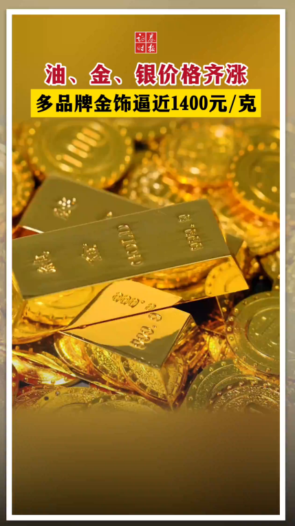 油、金、银价格齐涨 多品牌金饰逼近1400元/克