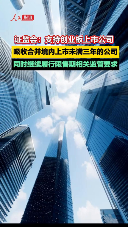 证监会:支持创业板上市公司吸收合并境内上市未满三年的公司,同时继续履行限售期相关监管要求