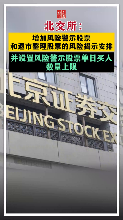 北交所:增加风险警示股票和退市整理股票的风险揭示安排 并设置风险警示股票单日买入数量上限