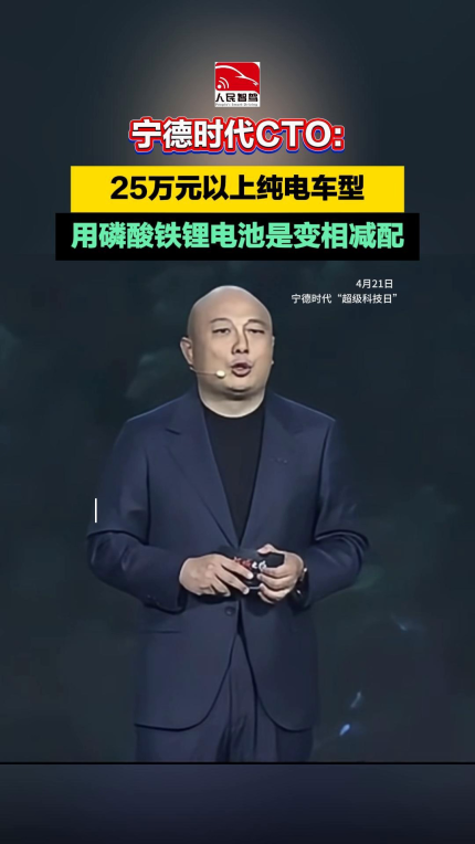 宁德时代CTO:25万元以上纯电车型用磷酸铁锂电池是变相减配