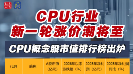 CPU行业新一轮涨价潮将至 CPU概念股市值排行榜出炉