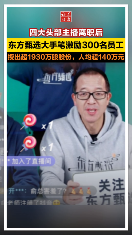 四大头部主播离职后,东方甄选大手笔激励300名员工,授出超1930万股股份,人均超140万元