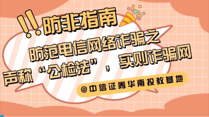 【中信证券华南投教基地】防非指南:防范电信网络诈骗之——声称“公检法”,实则诈骗网