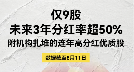 分红率较高的优质股未来跑赢市场概率较高。数据宝梳理已经发布2024年~2026年股东回报规划的公司发现,A股市场仅有9股未来三年分红率均超50%。
