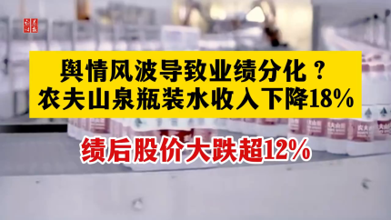 舆情风波导致业绩分化? 农夫山泉瓶装水收入下降18% 绩后股价大跌超12%