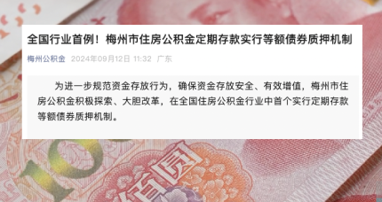 全国首创!梅州市住房公积金定期存款实行等额债券质押机制