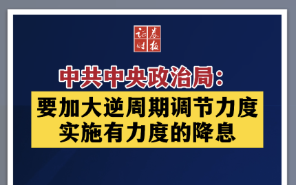 中共中央政治局:要加大逆周期调节力度,实施有力度的降息