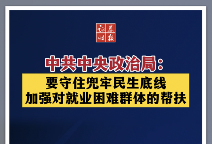 中共中央政治局:要守住兜牢民生底线,加强对就业困难群体的帮扶
