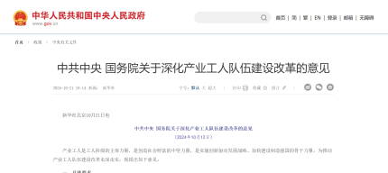 中共中央 国务院关于深化产业工人队伍建设改革的意见。