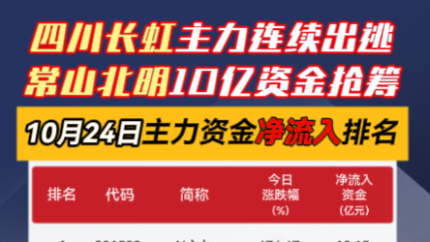10月24日主力资金净流入/出排名 #主力资金 #四川长虹 #常山北明 #净流入 #净流出